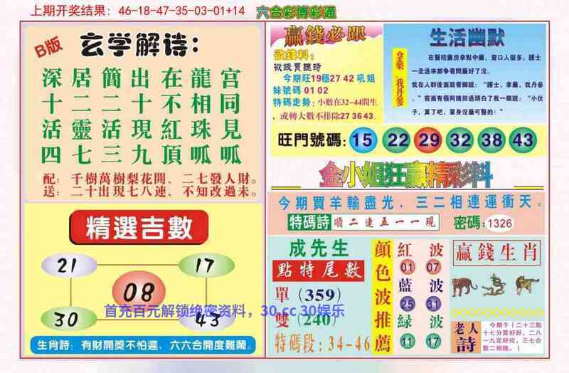 | 317期:无敌七肖【羊猴兔蛇鼠猪鸡】开:鼠18准 | |||
